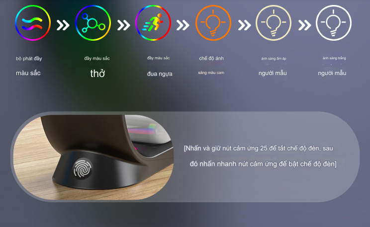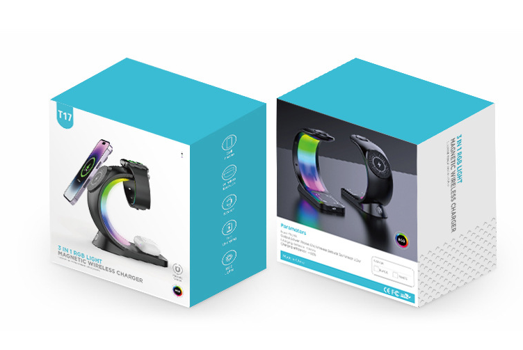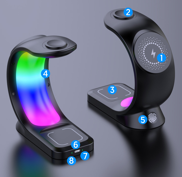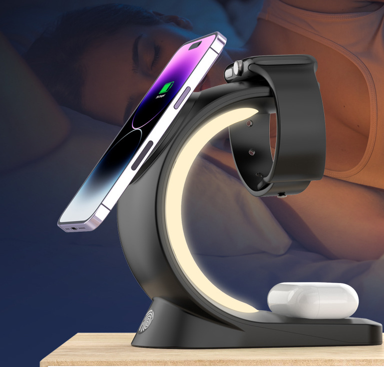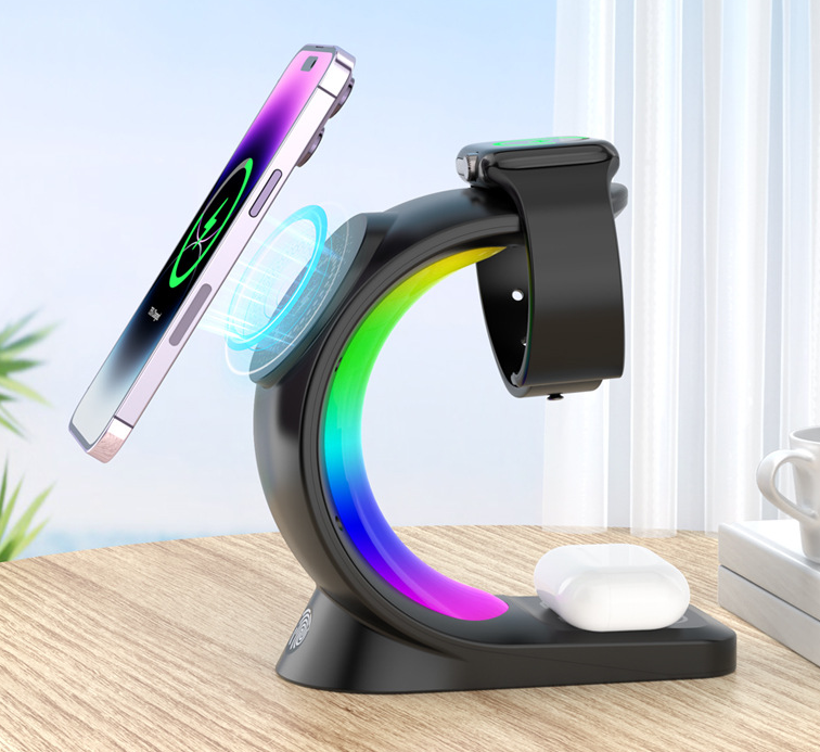 Bộ sạc không dây 3 trong 1 có led RGB điện thoại – đồng hồ – tai nghe